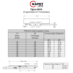 - HOVERHANG (LA DISTANCIA QUE HAY ENTRE LA BISAGRA DE ARTICULACIÓN Y EL EXTREMO DEL CAJÓN DE VOLTEO)